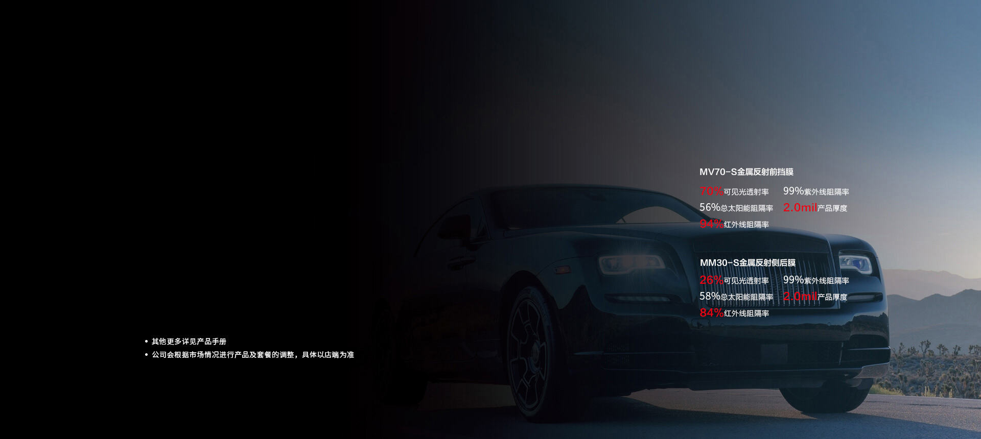 十二層貴金屬,多層磁控濺射技術(shù),環(huán)保節(jié)能,超強(qiáng)隔熱防爆且提升整體車(chē)輛質(zhì)感與美觀度,更能有效防止破碎玻璃飛濺對(duì)駕駛員的二次傷害。車(chē)輛整體更美觀、更高端、更安全。